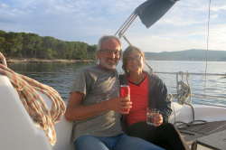 Wir sind Doris und Hans, haben noch eine Koje frei und suchen ein weiteres Paar bzw. ein oder zwei Mitsegler. Wir sind beide über 60, haben den SKS-Schein sind jedoch keine Profisegler. Ihr braucht keine Segelerfahrung. Wir machen Segelurlaub und sammeln keine Seemeilen. Grundsätzlich kochen uns essen wir auf dem Boot, können aber auch mal essen gehen. Wir lieben ankern in Buchten, machen gerne Badestopps, Landausflüge oder schauen uns nette Hafenstädchen an. An Boad machen wir gerne FKK, ist aber keine Verpflichtung für Euch. Preis ist pro Woche pro Person 500,00 Euro plus 200,00 Euro Bordkasse (Essen und Trinken an Bord, Hafengebühren, Treibstoff)